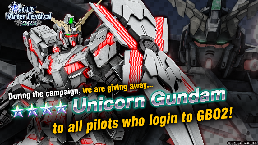 ★★★★ MS “Unicorn Gundam LV1”! - ※You can receive the present from Reward Center.