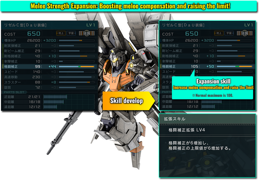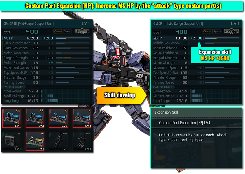 You can obtain bonus effects by giving your MS “expansion skills” at expansion facilities.