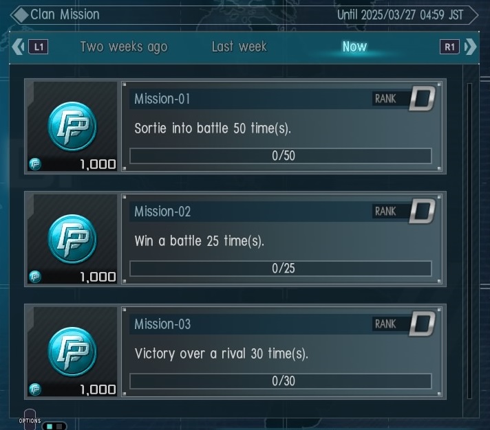 Therefore, we are providing the details of the clan missions below. - ■Clan missions during [JST] 03/20/2025 05:00 to 03/27/2025 04:59