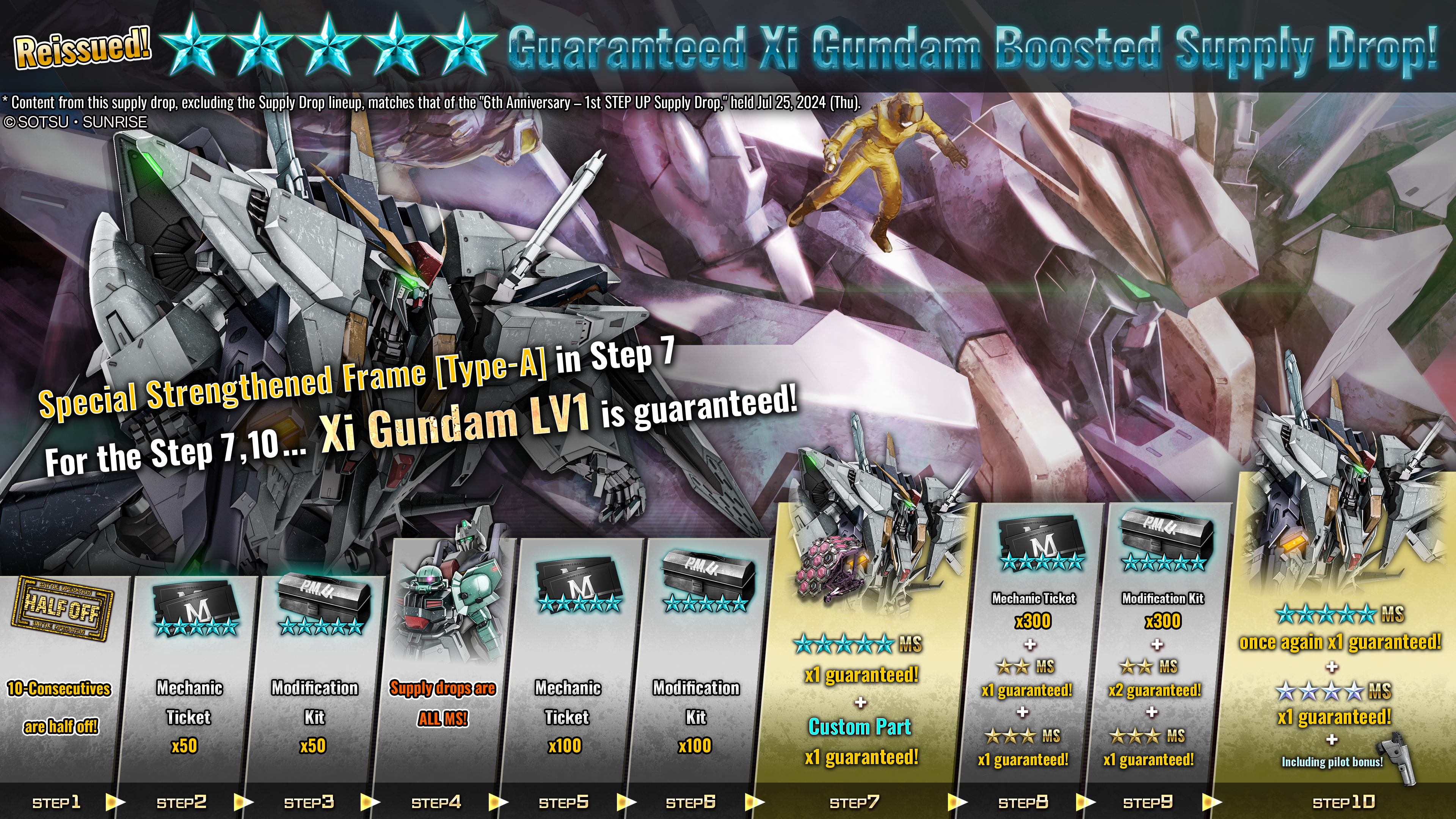 Starting from [PDT] 05/07/2025 / [CEST] 05/08/2025, Xi Gundam LV1 Guaranteed STEP UP Supply Drop will begin.