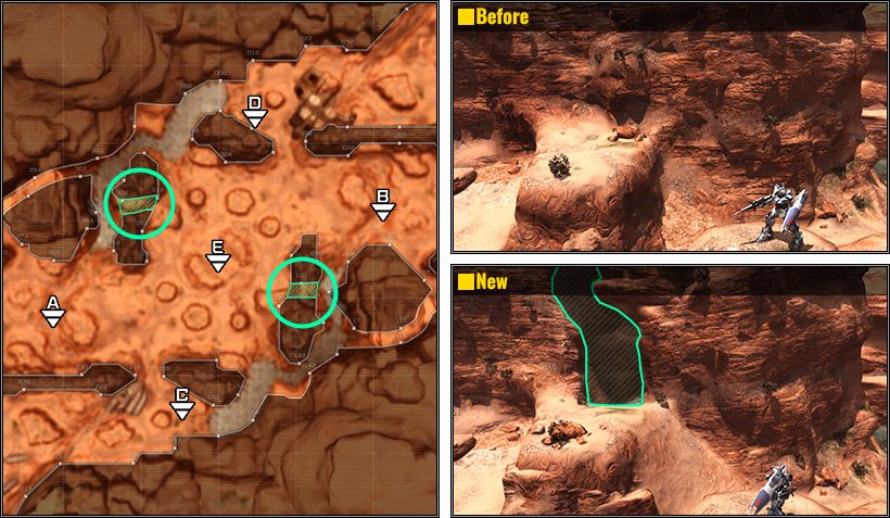 - ⇒ We have created an opening in the cliff that separates the central area and the waterways, adding a new route to relay points A and B.