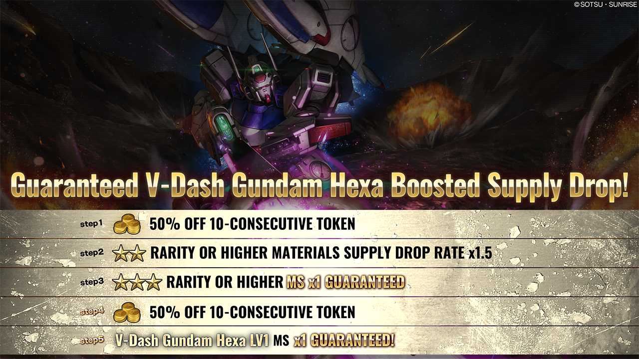 Starting from [PST] 02/04/2026 / [CET] 02/05/2026, V-Dash Gundam Hexa LV1 guaranteed STEP UP Supply Drop will begin.