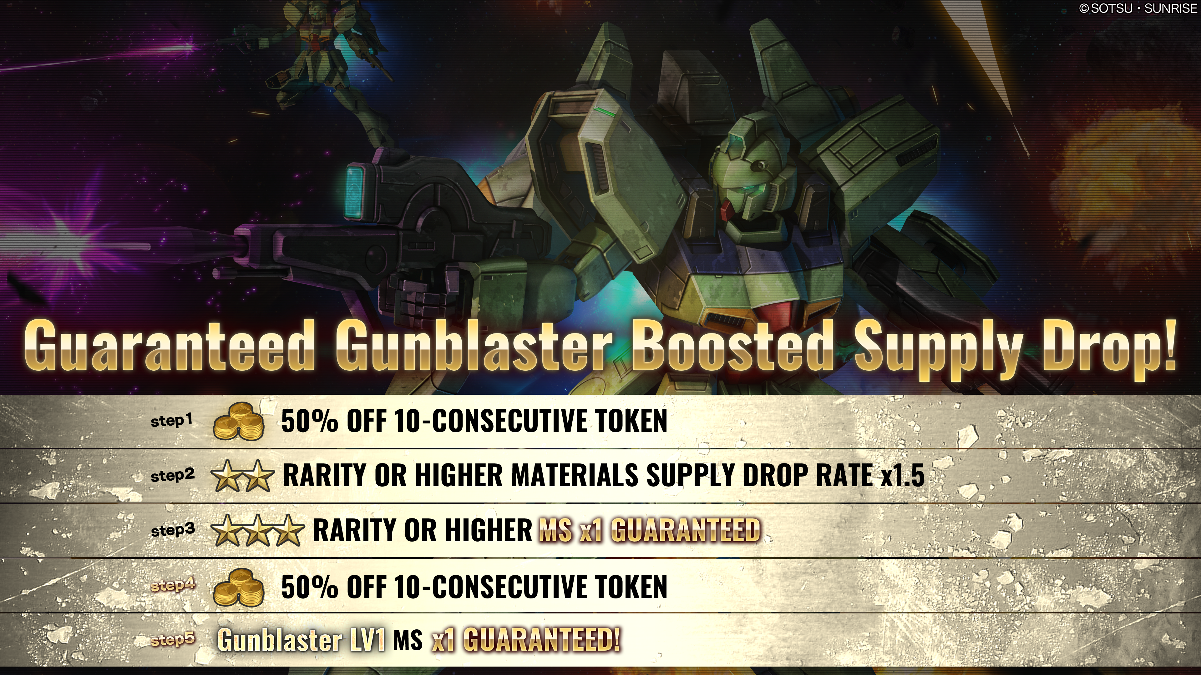 - ・STEP5 (30 Tokens): Gunblaster LV1 x1 guaranteed!