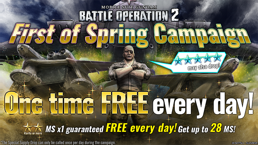 - During the campaign, pilots who login to the game will obtain COST 750 MSs such as ZZ Gundam LV3 and Banshee LV2, also weapons are coming together as presents!