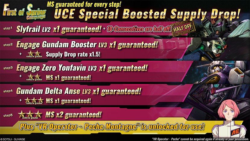 - ※Pilots who already have those MS(s) and weapon(s) will obtain a number of recycle tickets instead.