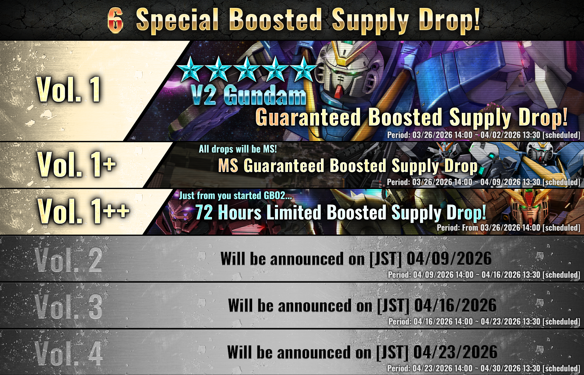 - Vol.1: Guaranteed V2 Gundam Boosted Supply Drop!