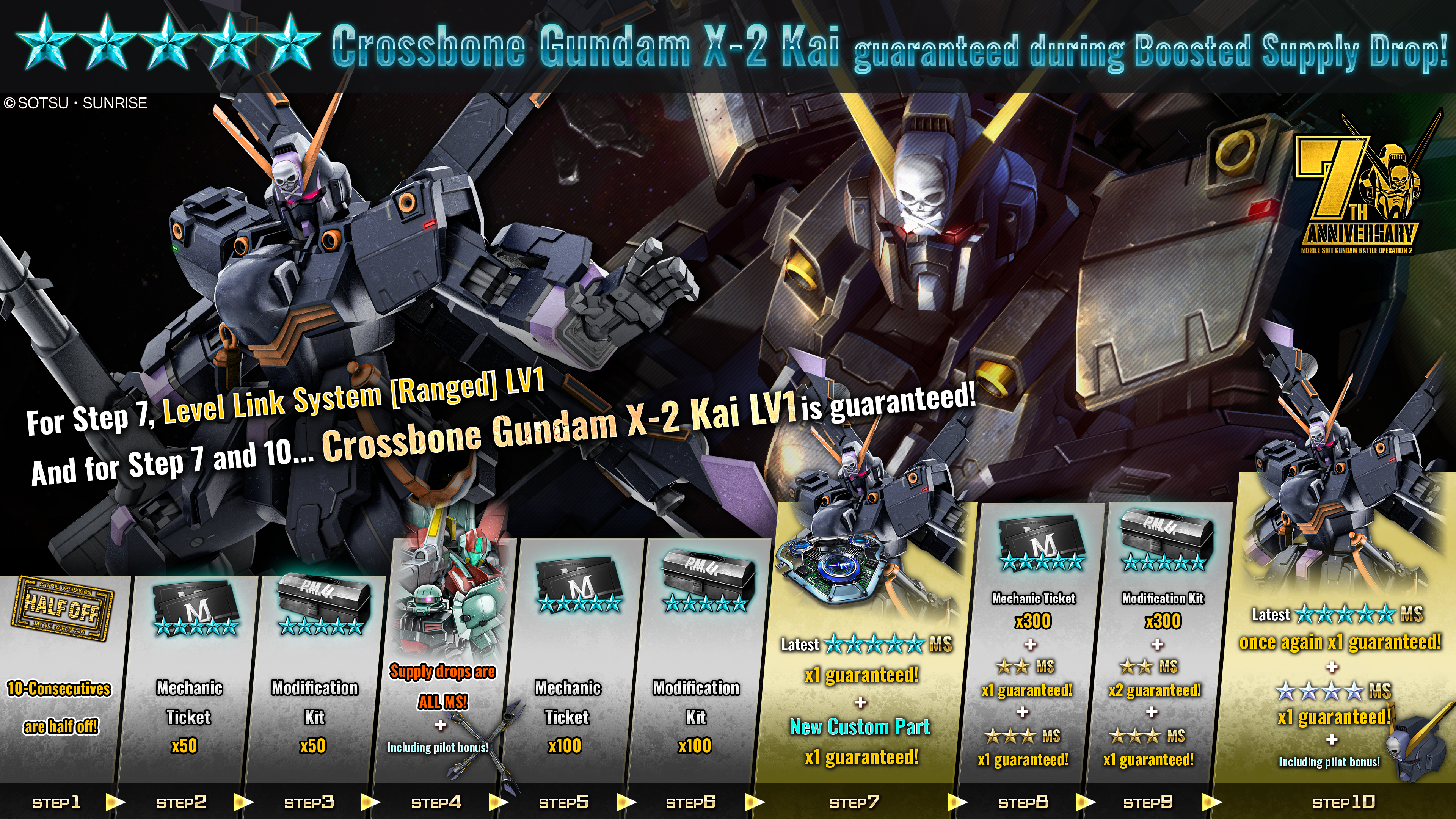 - ・STEP10 (30 Tokens): Another 1 “Crossbone Gundam X-2 Kai LV1” guaranteed!!