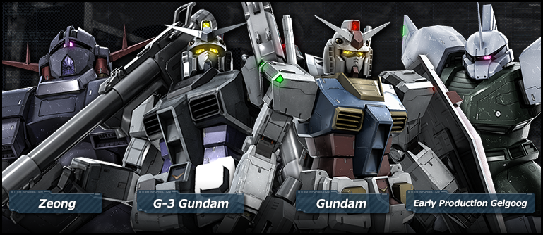 ・★★★ Gundam G-3 LV4 (For Ground/ Space Use. Cost: 600) ・★★★ Zeong LV2 (For Space Use. Cost: 600) ・★★★ Gundam LV5 (For Ground/ Space Use. Cost: 600) ・★★★ Early Production Gelgoog LV5 (For Ground/ Space Use. Cost: 600)