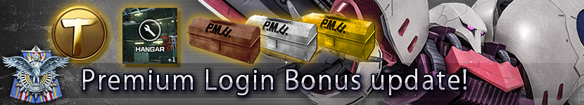 (Hangar will be closed after the current upgrade of the MS in the hangar.) - ※For the premium login bonus, Platinum Cross can be used the next day you get it.