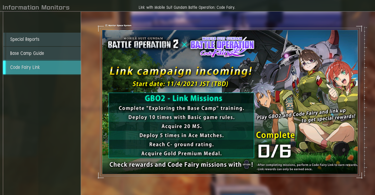 - ・ Play Code Fairy and achieve certain conditions to get an MS that can be used in GBO2.