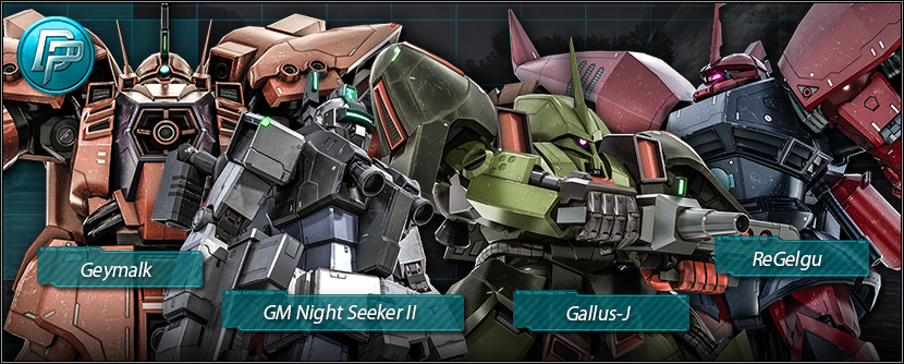 ・Striker Custom :From “Mobile Suit Gundam: Bonds of the Battlefield” to “Mobile Suit Gundam Katana” ・Zudah F :From “Mobile Suit Gundam: Bonds of the Battlefield” to “Mobile Suit Gundam Blazing Shadow” ・Dom Barrage :From “Mobile Suit Gundam: Bonds of the Battlefield” to “Mobile Suit Gundam Blazing Shadow” ・Rebawoo :From “Mobile Suit Gundam UC” to “UC-MSV”
