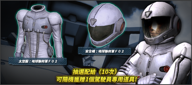 - ※期間內只要進行抽選配給(10次)就會自動進行第11次的抽選配給,就可隨機獲得駕駛員專用道具1個。