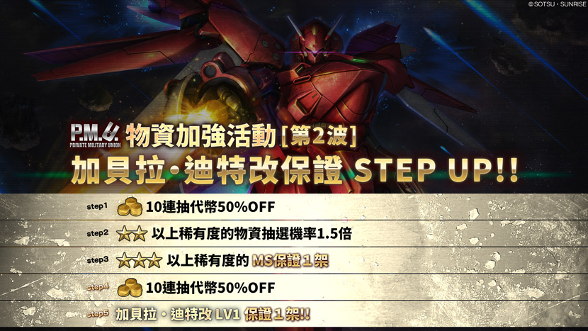 每當玩家完成一次10連抽選配給,將會進入下一階段:STEP1→STEP2→STEP3→STEP4→STEP5。