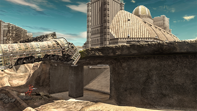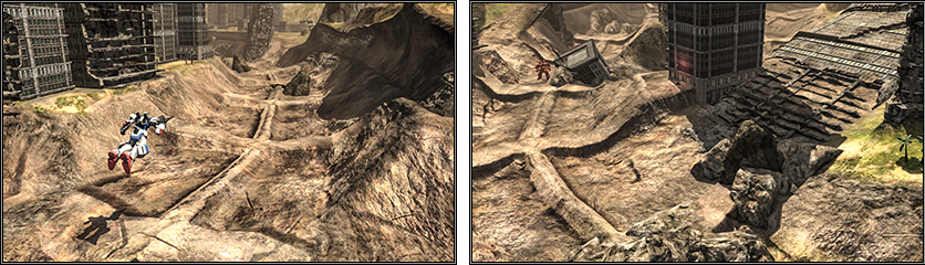 設計概念源自機動戰士V高達中登場的摩托車型戰艦「阿特拉斯迪亞」所破壞的都市區。 - <MAP全域>
