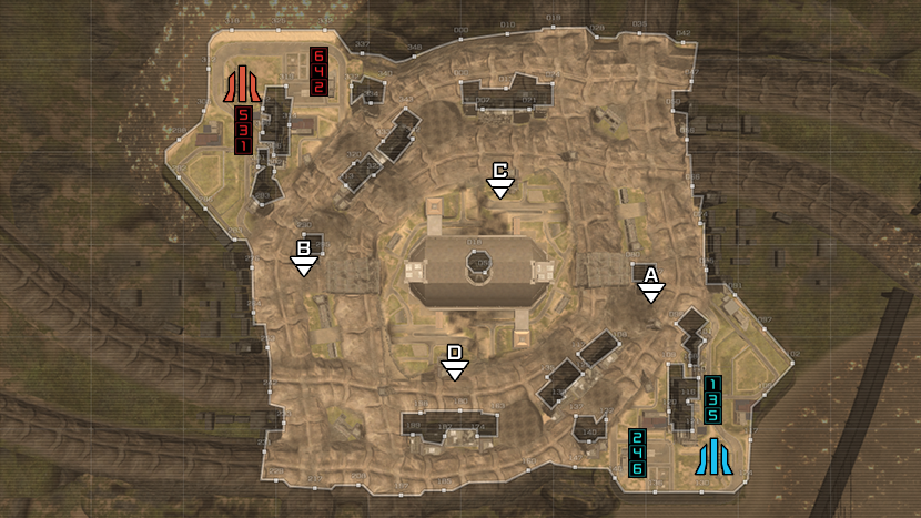 - 中央建築可進入內部,同時也是攻入敵陣的最短途徑。