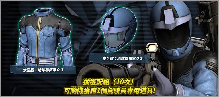 - ※期間內只要進行抽選配給(10次)就會自動進行第11次的抽選配給,就可隨機獲得駕駛員專用道具1個。