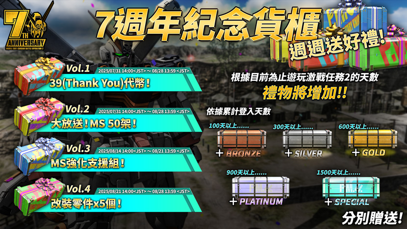 『機動戰士高達 激戰任務2』迎來了開始營運的7週年!