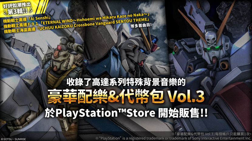 - 於PlayStation™Store將販售可獲得高達系列特別 BGM 的