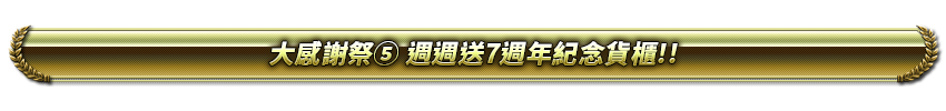 - 為紀念7週年,於活動期間,每週將舉辦特別登入獎勵活動!