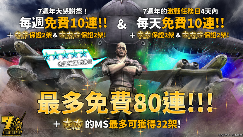 將舉辦每天10連免費!+★★以上MS保證2架 &★★★以上MS保證2架!