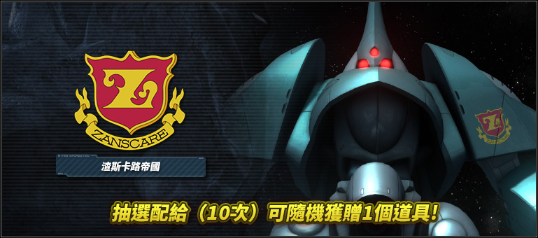 - ※期間內只要進行抽選配給(10次)就會自動進行第11次的抽選配給,就可隨機獲得駕駛員專用道具1個。