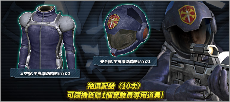 - ※期間內只要進行抽選配給(10次)就會自動進行第11次的抽選配給,就可隨機獲得駕駛員專用道具1個。