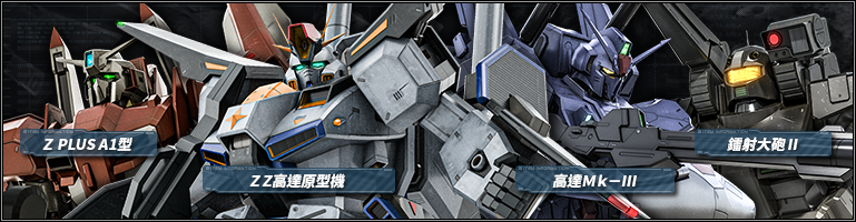 ・★★★ ZZ高達原型機 LV2 (突擊機、地上/宇宙兩用機型、成本值700) ・★★ Z PLUS A1型 LV4 (突擊機、地上專用機型、成本值750) ・★★ 高達Mk-Ⅲ LV4 (泛用機、地上/宇宙兩用機型、成本值700) ・★ 鐳射大砲Ⅱ LV4 (支援機、地上/宇宙兩用機型、成本值550)