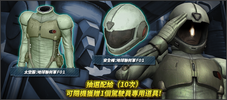- ※期間內只要進行抽選配給(10次)就會自動進行第11次的抽選配給,就可隨機獲得駕駛員專用道具1個。