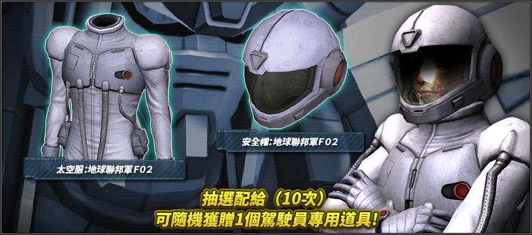 - ※期間內只要進行抽選配給(10次)就會自動進行第11次的抽選配給,就可隨機獲得駕駛員專用道具1個。