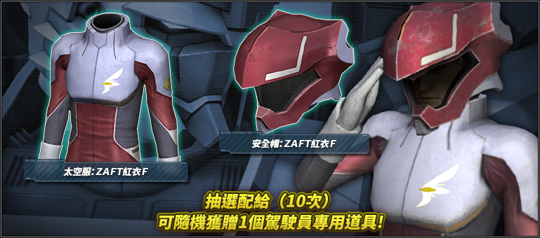 - ※期間內只要進行抽選配給(10次)就會自動進行第11次的抽選配給,就可隨機獲得駕駛員專用道具1個。