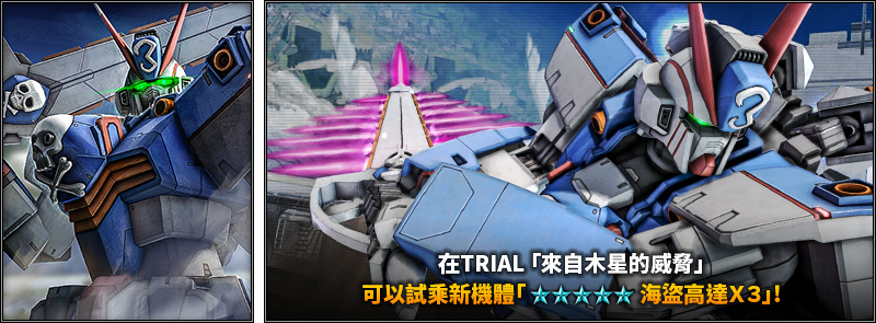 - ⇒ 可在TRIAL「來自木星的威脅」中,試乘新機體「海盜高達X3」。