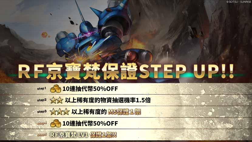 - ・STEP5(代幣30枚):RF京寶梵LV1保證1架!