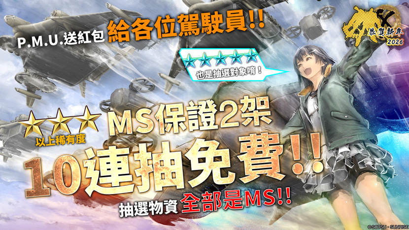 「新年紅包 ★★★以上MS保證2架10連抽免費!!」公告