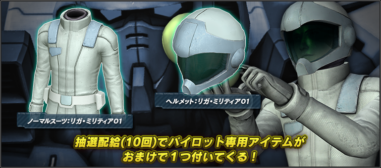 - ■抽選配給(10回)にはパイロット専用アイテムのおまけ付き!