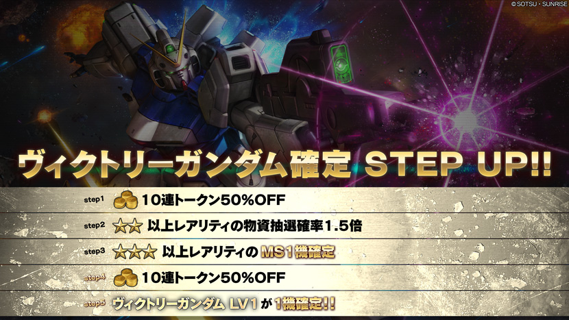 - ・STEP5(トークン30枚):ヴィクトリーガンダムLV1が1機確定!