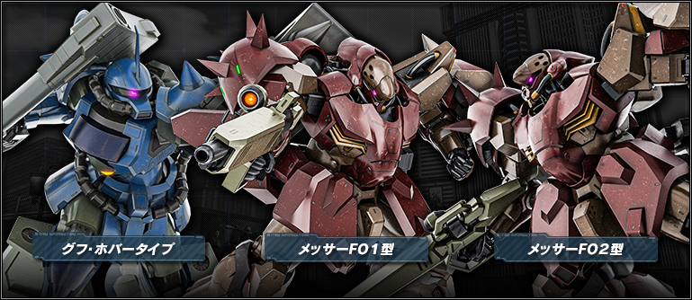 ・★★★ メッサーF01型 LV3 (汎用、地上/宇宙両用、コスト750) ・★★★ メッサーF02型 LV2~3 (強襲、地上/宇宙両用、コスト700~) ・★★ グフ・ホバータイプ LV2~4 (強襲、地上専用、コスト400~) -