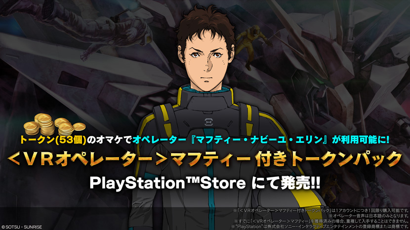 - 期間中、トークン53個に<VRオペレーター>マフティーが付いたトークンパックを販売いたします。
