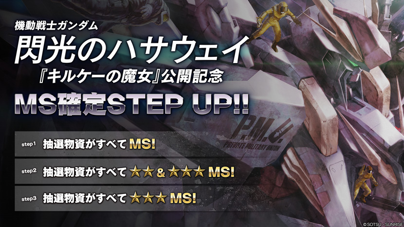 - ■機動戦士ガンダム 閃光のハサウェイ『キルケーの魔女』公開記念MS確定STEP UP抽選配給開催のお知らせ