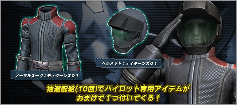 - ■抽選配給(10回)にはパイロット専用アイテムのおまけ付き!