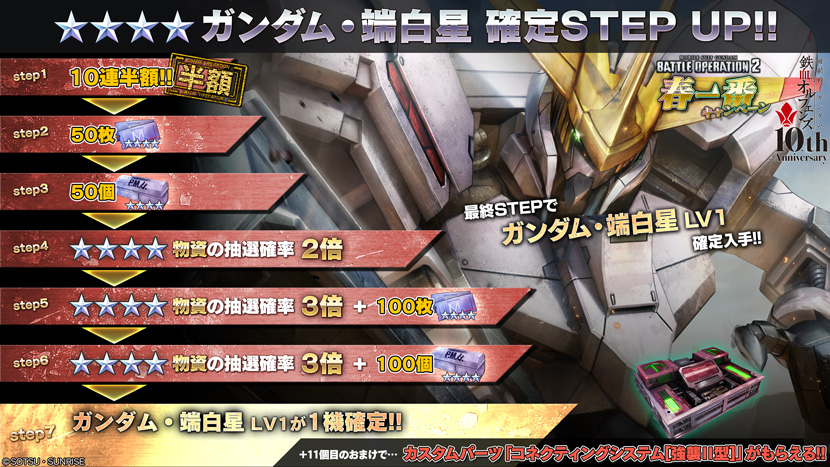 - ・STEP7(トークン30枚):「ガンダム・端白星 LV1」が1機確定!!