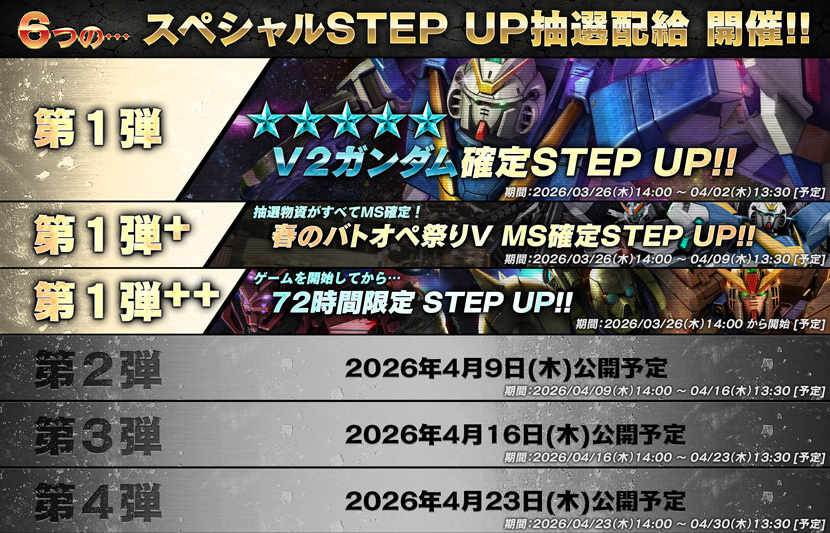 - 第1弾:V2ガンダムが確定入手できるSTEP UP!