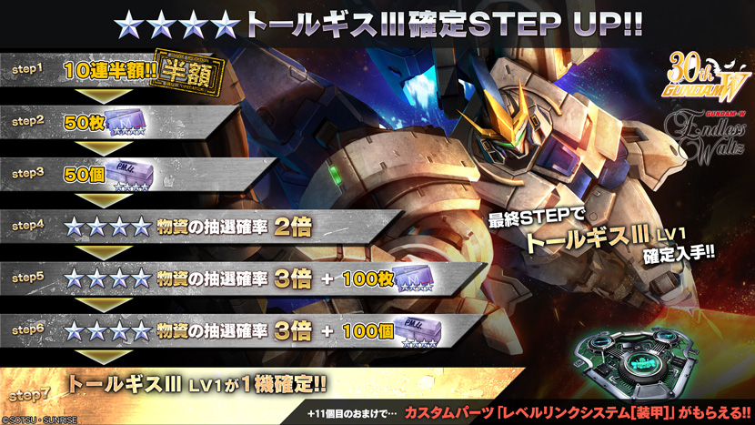 - ・STEP7(トークン30枚):「トールギスⅢ LV1」が1機確定!!