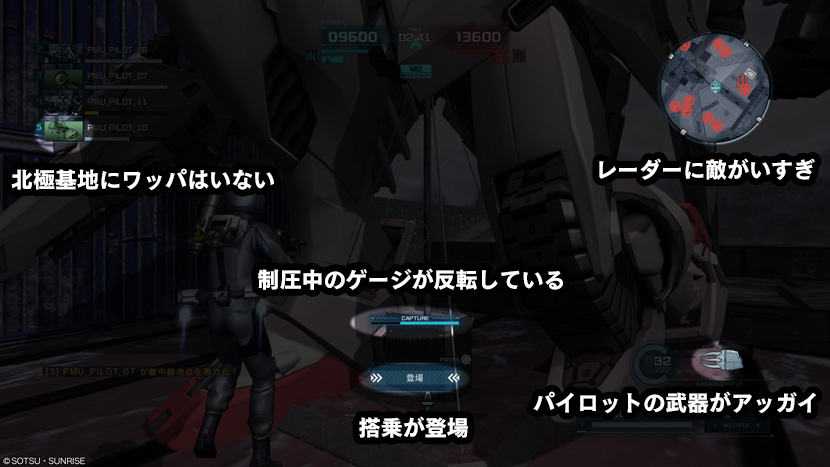 高所は遮蔽物が少なく移動しやすいものの、射線が通り敵機の攻撃を受けやすいため、遮蔽物が多い低所での移動が基本となります。