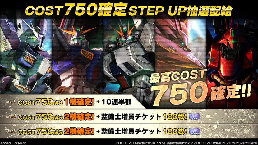 • ・STEP1(トークン15枚):COST 750 MS1機確定!+10連半額