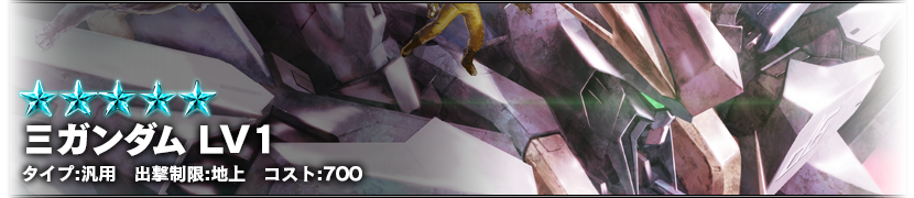 - ログイン1日目:Ξガンダム LV1 (汎用、地上専用、コスト700)