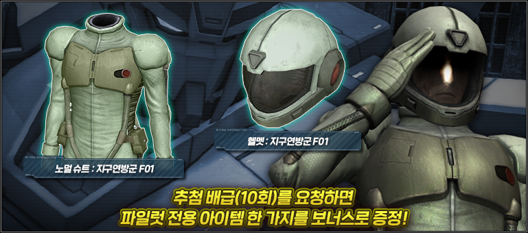 - ■추첨 배급(10회)를 요청하면 파일럿 전용 아이템을 보너스로 증정!