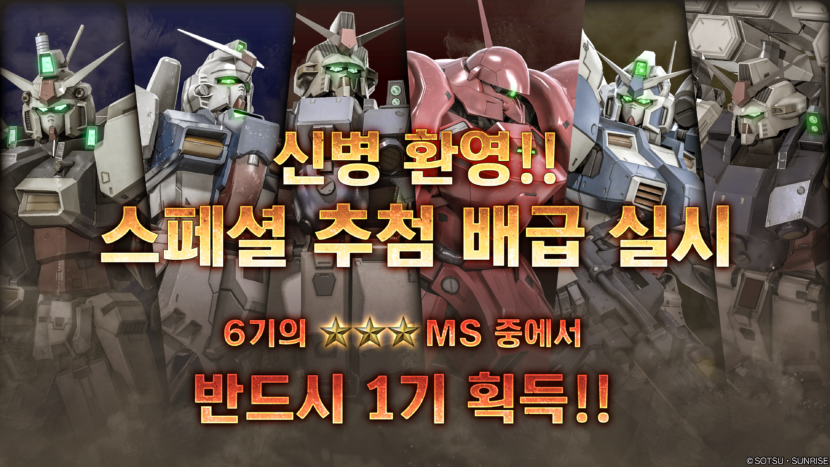 - 다음 라인업에 있는 ★★★ MS 중에서 무작위로 1기를 반드시 입수할 수 있는 추첨 배급입니다.