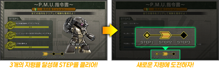 - ⇒ 간단한 지령을 달성해 MS 등의 보수를 획득할 수 있는 「신병을 위한 신규 기능」입니다.