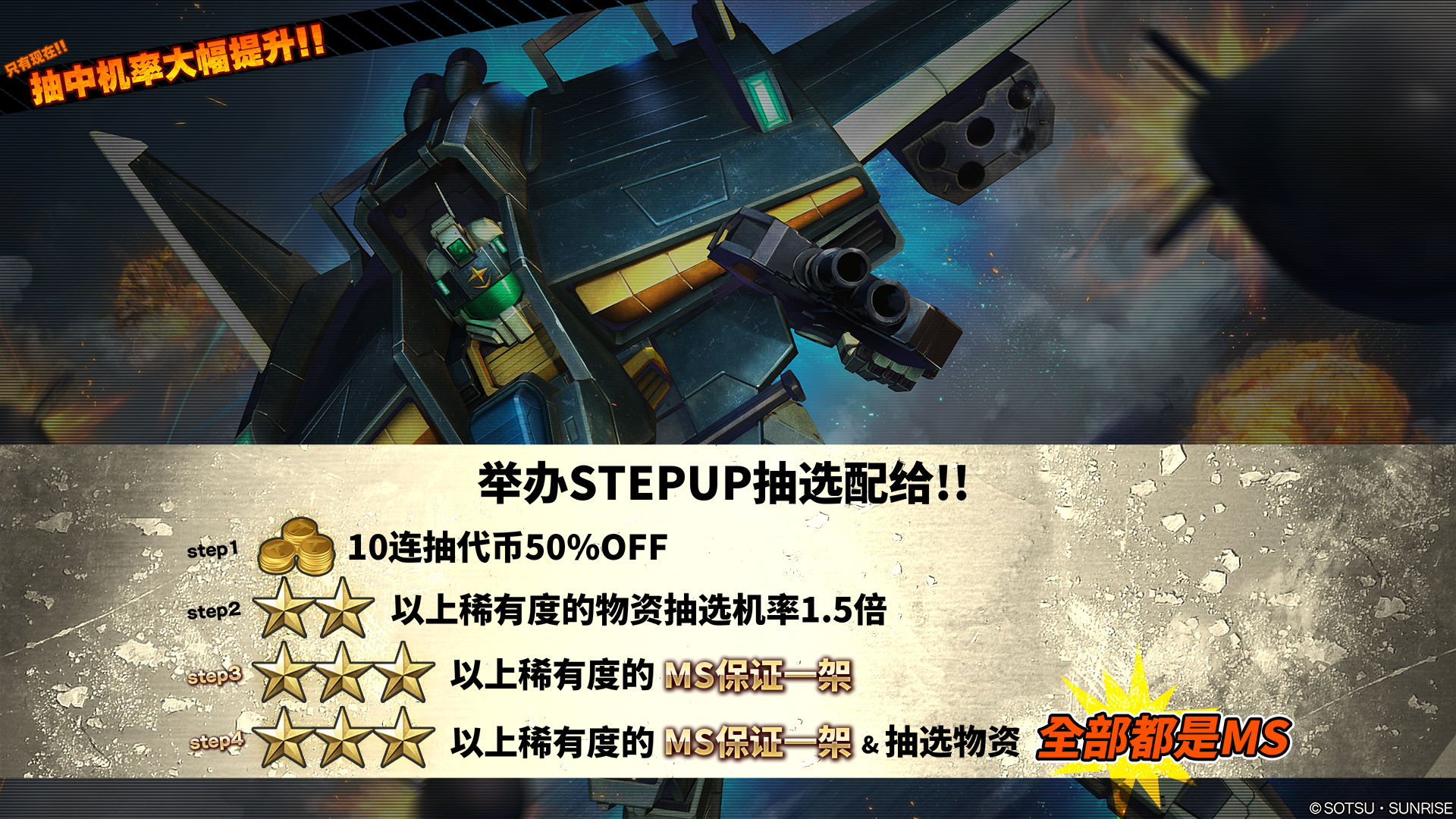 ・STEP4(代币30枚):保证随机获得★★★以上的MS1架!& 所有抽选物资皆为MS!