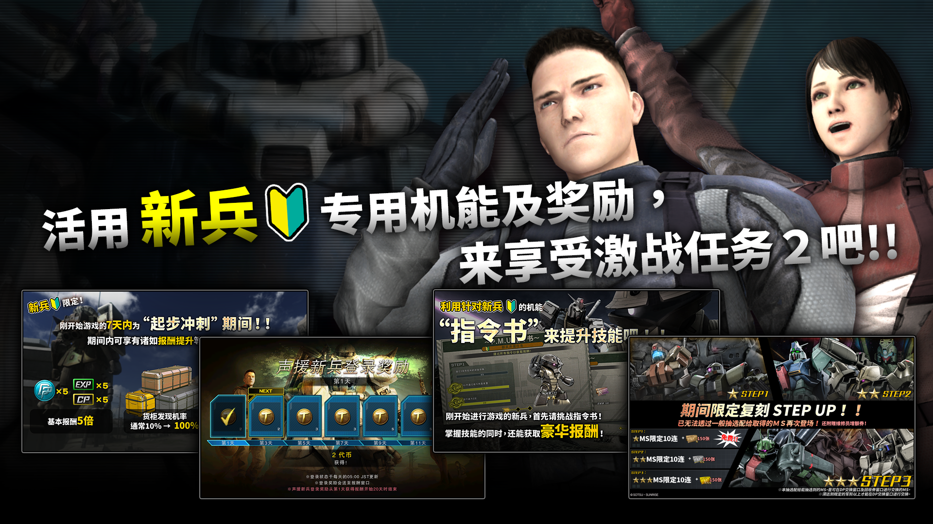 请活用「起步冲刺」期间和「新兵应援登入奖励」 以及推荐给新兵的「指令书」, 来好好享受激战任务2!